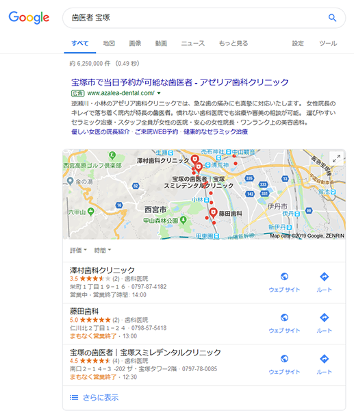 競合の歯医者がGoogleマイビジネスの管理を行っていないため、更にランクアップが期待できます。