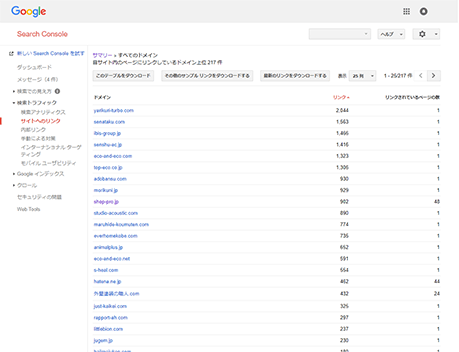 CSVデータでダウンロードを行うことにより、全てのリンクを確認することができます。