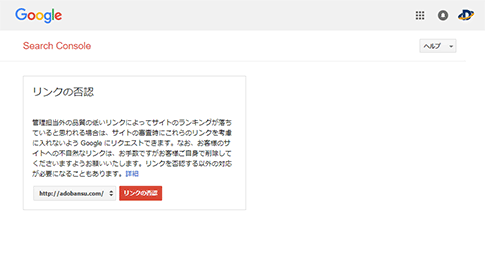 外部リンクによるペナルティーの改善は、Googleサーチコンソールより、リンクの否認を申請することで、ペナルティーに繋がるリンクを無効にすることが可能です。